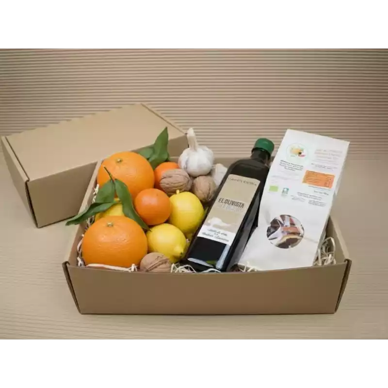Parmi les produits qui composent nos boîtes cadeaux, vous trouverez nos délicieux agrumes, oranges, mandarines et citrons mais aussi d'autres produits comme l'huile d'olive de la coopérative de Planes, à Alicante, des noix d'origine valencienne et de l'ail cultivé à Tolède. Tous ces produits avec la qualité et la garantie de Naranjas de Cullera.